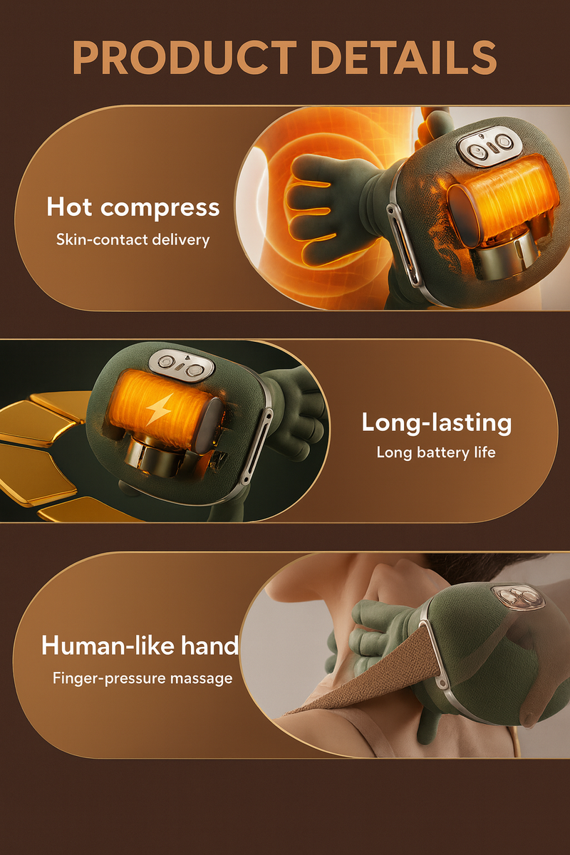 Watch our Blinkora Massager soothe tight muscles with real-hand simulation. See how effortless relief can be.